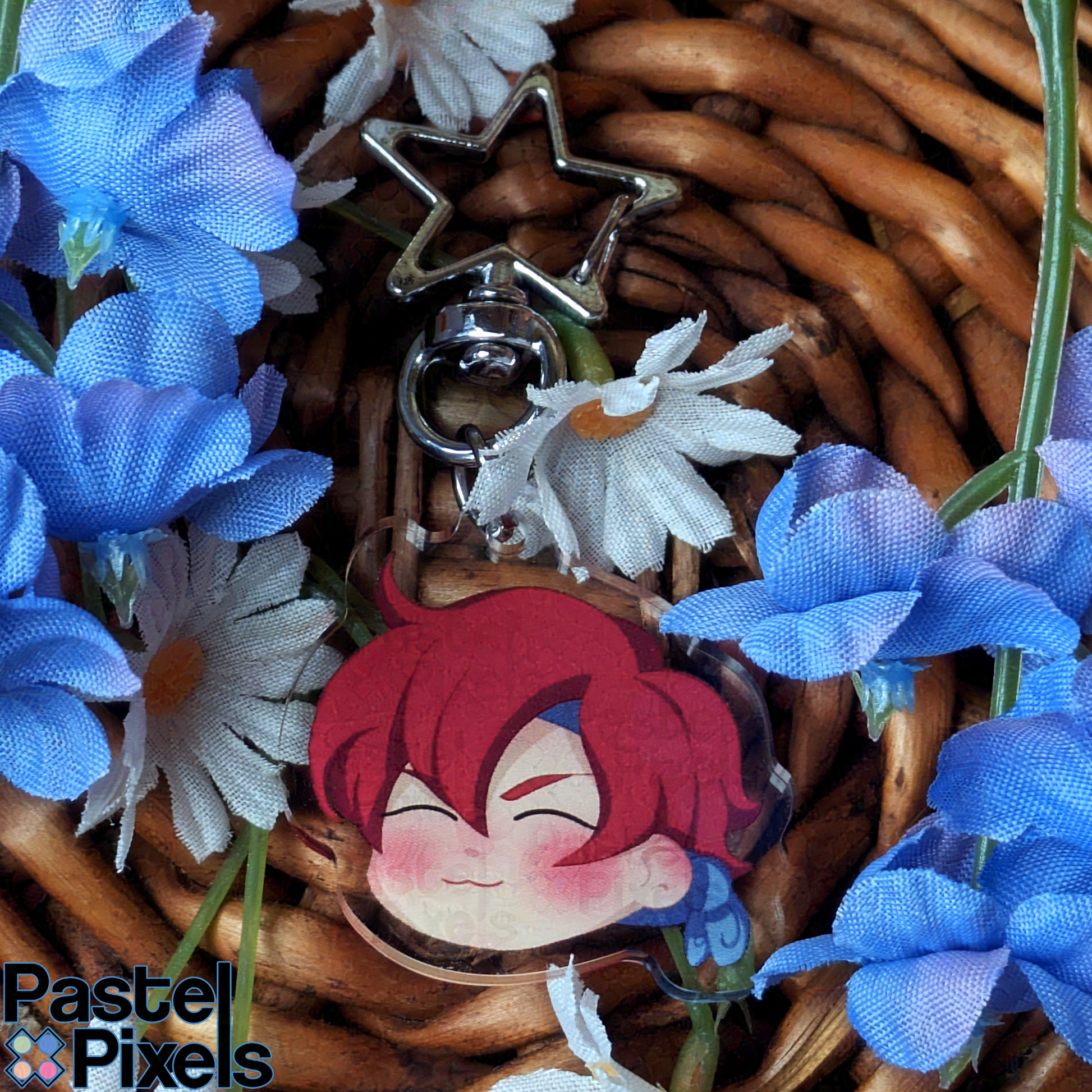 This keychain is double sided. Featuring March's normal expression on one side, and his drunk expression on the other side!